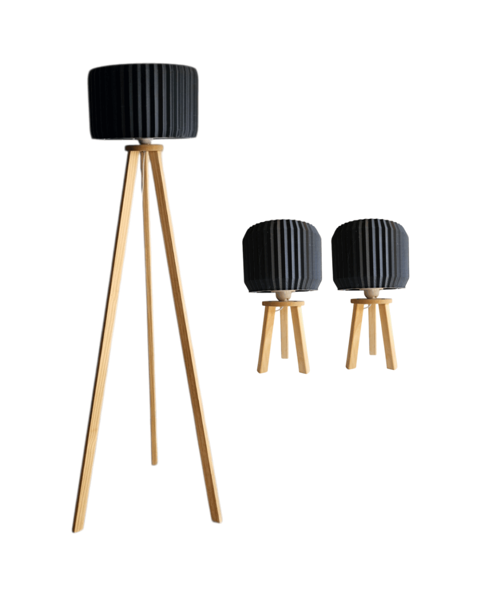Lampara de Pie AMPERE NEGRA + 2 VELADORES